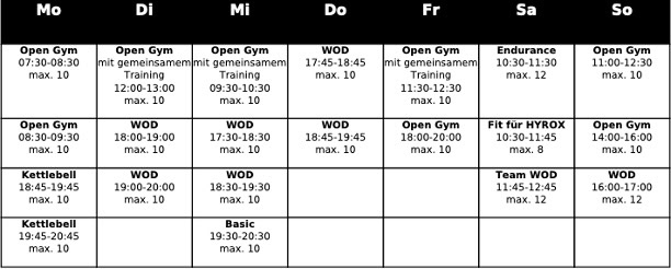 Diese Class besteht nach einem Warmup aus einem Kraft- oder Technik-Part und schließt mit einem Workout ab.